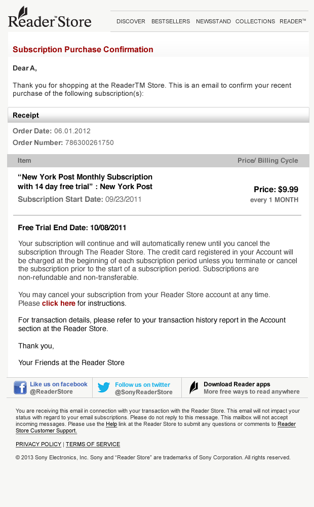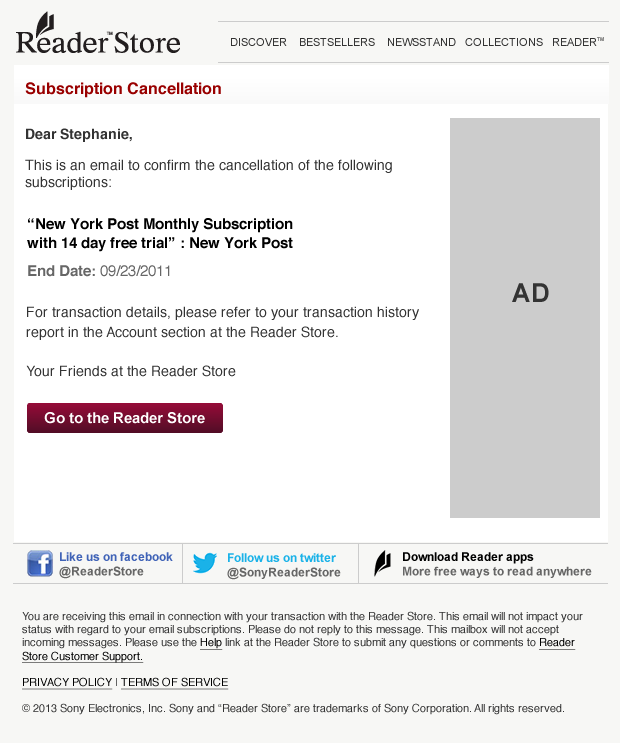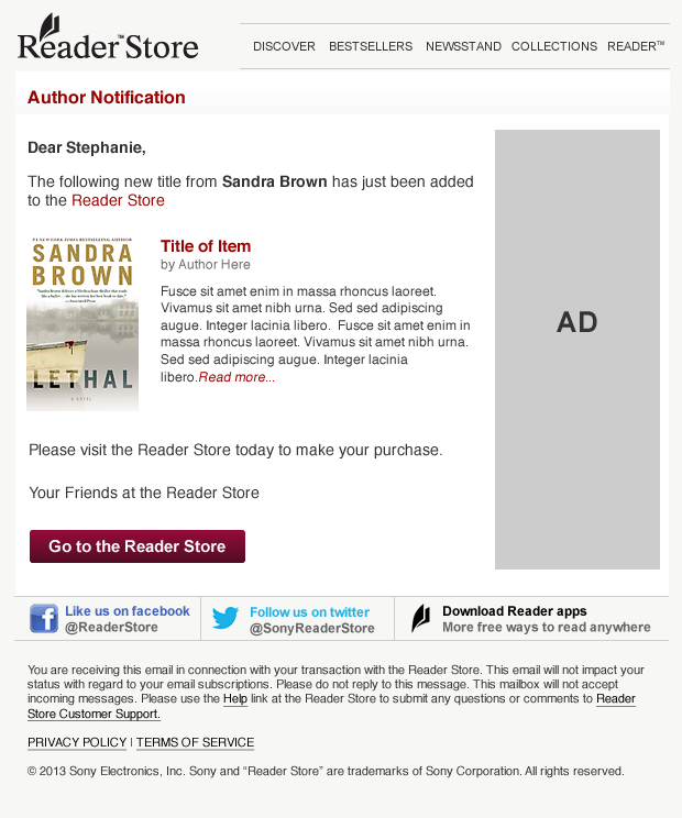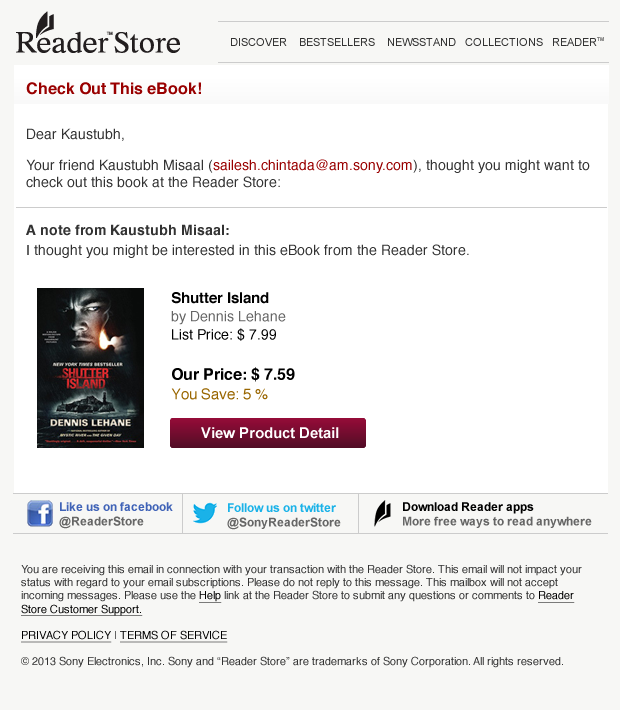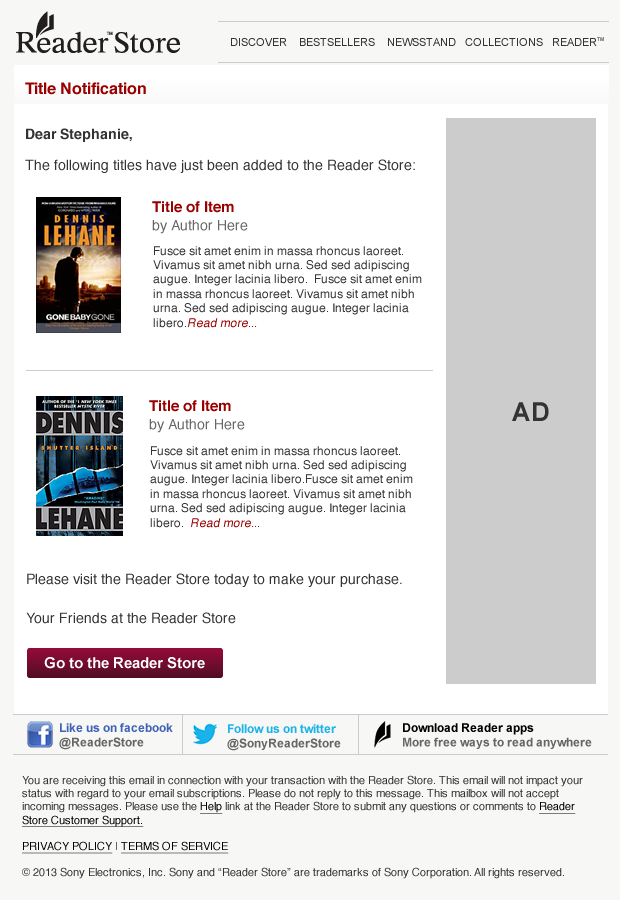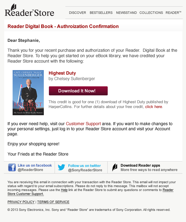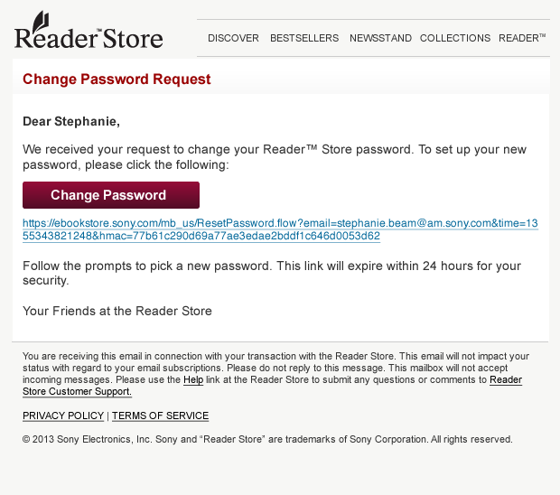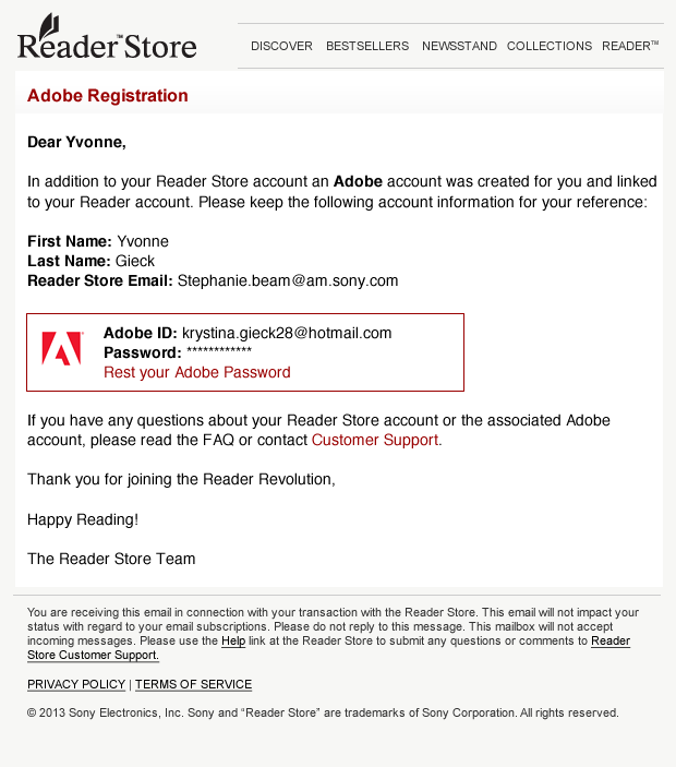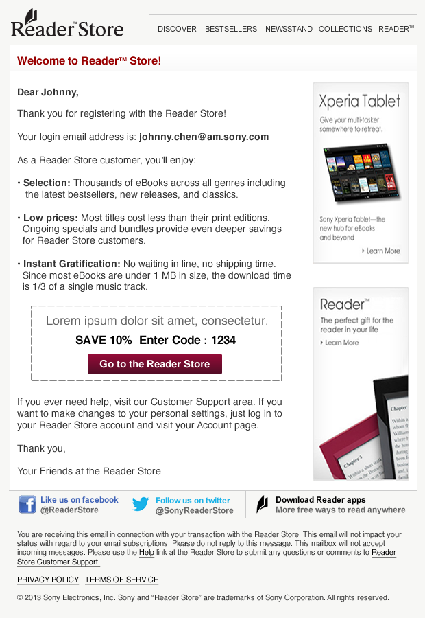Sony - Reader Store Email