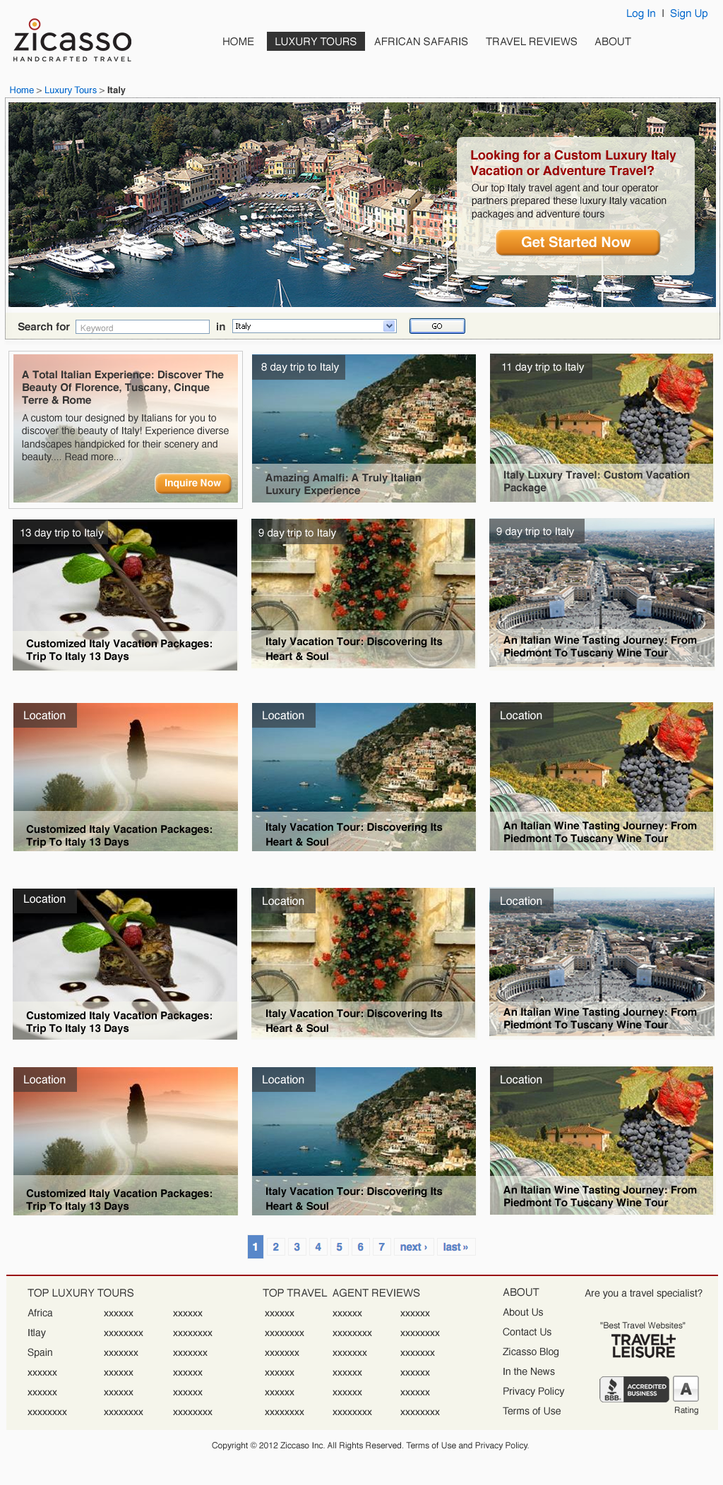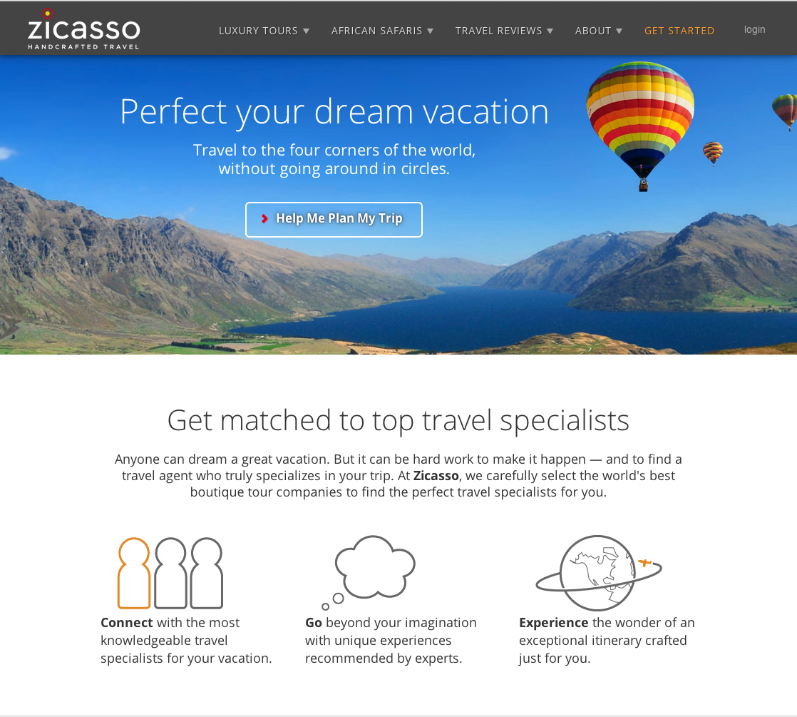 Zicasso (Client) – Create a sense of luxury travel site, providing the users a sense of trust in the site and its content. Connect user with other user's review of their travels.